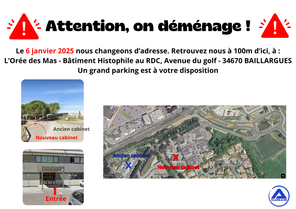 Dès le lundi 6 janvier 2025, nous serons heureux de vous accueillir dans notre nouveau cabinet, à quelques pas de l’actuel. Nous vous diffuserons bientôt les photos ainsi que tous les détails de ce nouvel espace entièrement pensé et rénové pour vous.